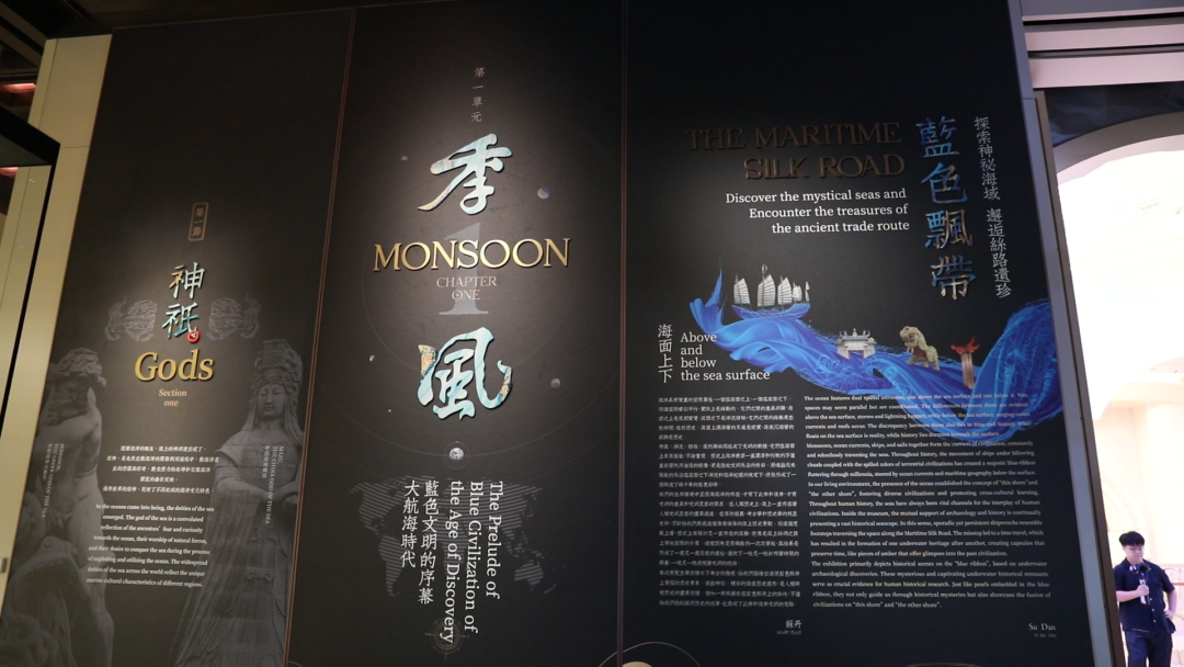 全展分为季风、文脉、交织,联结四个主题空间,采取文物与当代艺术并重的原则,在与海上丝绸之路相关出水文物的展出间带领观众穿越历史,探索海上丝绸之路的过去、当下和未来,同时体现出澳门深厚的文化底蕴与悠久的历史传统。
