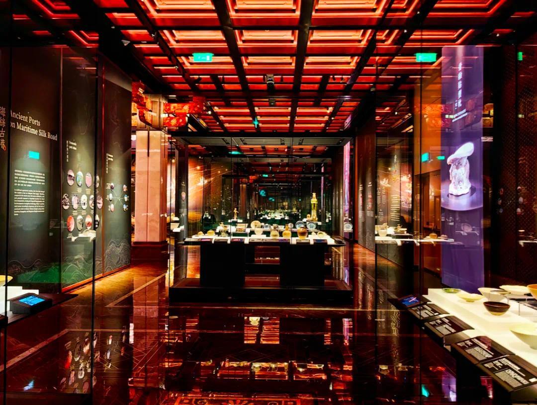 “保利美高梅博物馆”坐落于澳门美高梅二楼,空间面积近2,000平方米,按照国家一级文物展陈标准建造,结合中国传统非遗工艺和“一带一路”沿线主要国家的文物与艺术元素,融合传统中国工艺与尖端科技,为观者带来全感官的艺术文化体验,成为澳门成为文旅新地标。