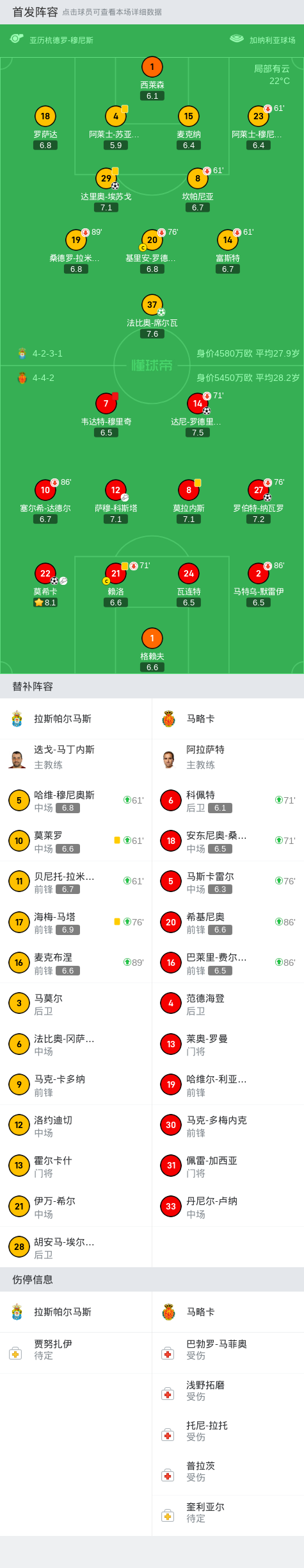 第46分钟,马略卡球员达尼-罗德里格斯打入一球。