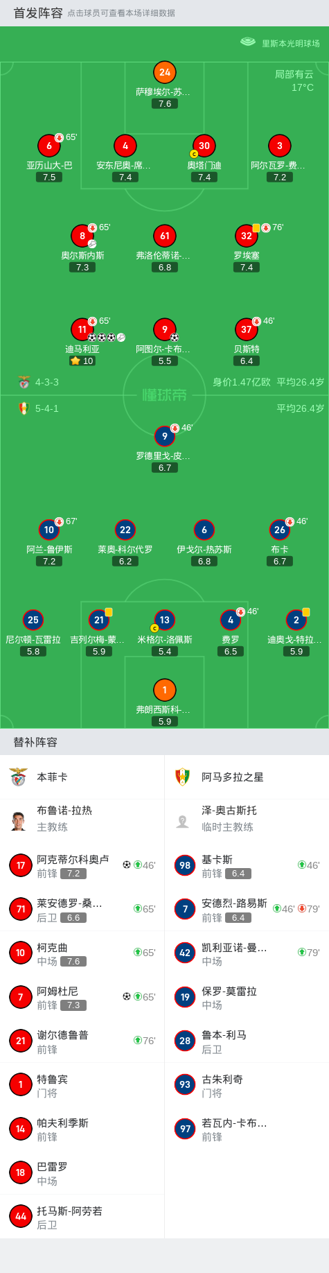 第81分钟,本菲卡球员阿姆杜尼打入一球。