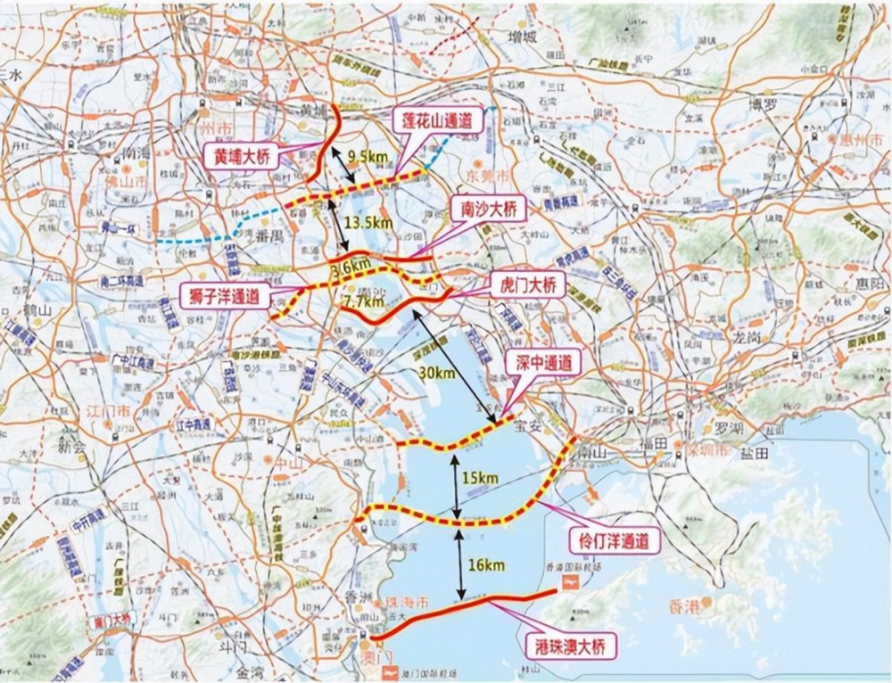 目前,大湾区正在修建的跨海通道有5条之多: