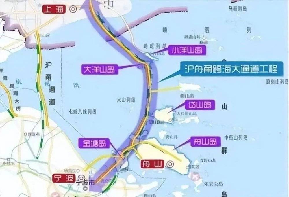 另一条则长得多,从上海临港经大洋山、舟山至宁波的跨海通道——沪舟甬跨海大通道。