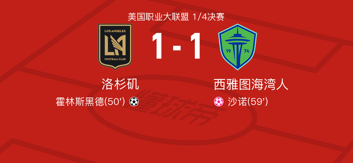 在美国职业大联盟1/4决赛中,洛杉矶队坐镇主场迎战西雅图海湾人队。比赛中,洛杉矶队的博古什送出精彩助攻,帮助霍林斯黑德成功破门,为球队取得领先。然而,随后洛杉矶队的沙诺不慎自摆乌龙,使得比分被扳平。最终,双方在常规时间内以1-1握手言和,比赛将进入加时赛。