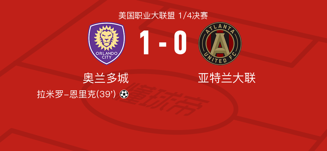 在美国职业大联盟1/4决赛中,奥兰多城坐镇主场迎战亚特兰大联。比赛中,奥兰多城的拉米罗-恩里克成功破门,为球队取得领先。最终,奥兰多城以1-0战胜亚特兰大联,顺利晋级。