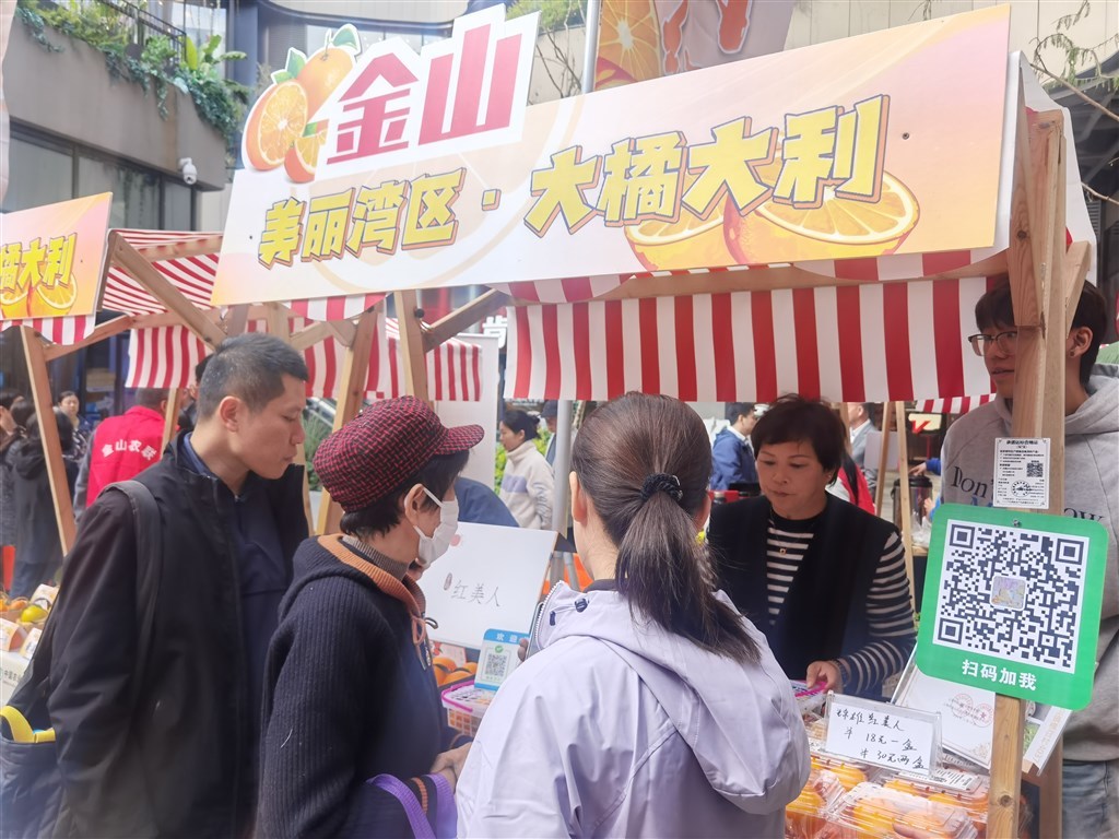 “金山红美人,皮薄多汁、细嫩纯甜”“绿色认证红美人,免费品尝”……设摊人员的吆喝声此起彼伏,吸引大量市民试吃、购买。
