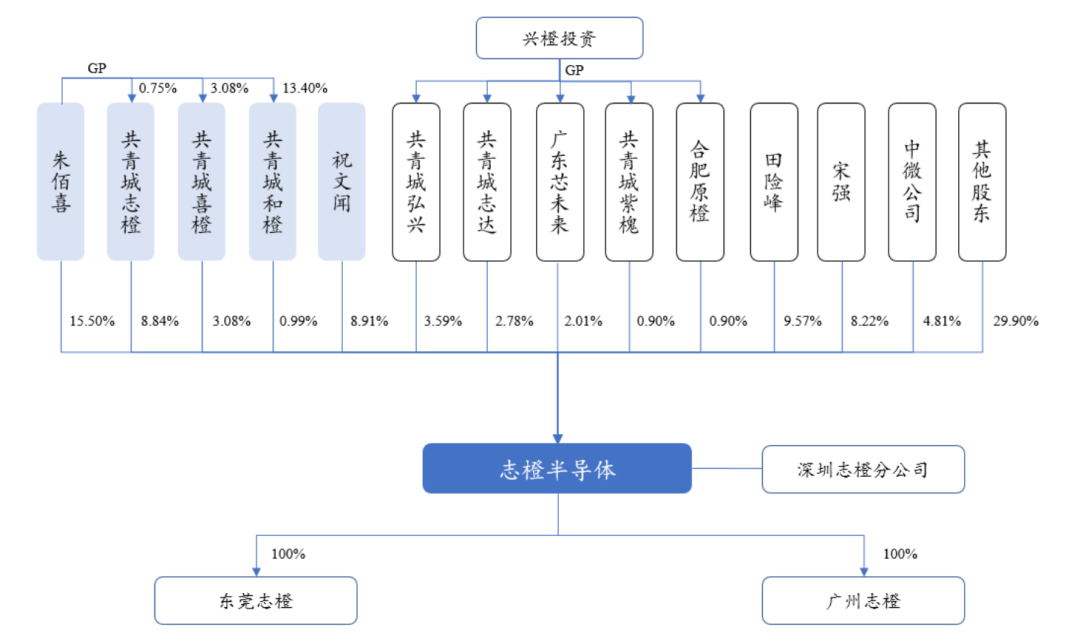 共青城弘兴、共青城志达、广东芯未来、共青城紫槐及合肥原橙合计持有志橙股份10.18%的股份,前述5个有限合伙企业的私募基金管理人均为兴橙投资,构成一致行动关系。