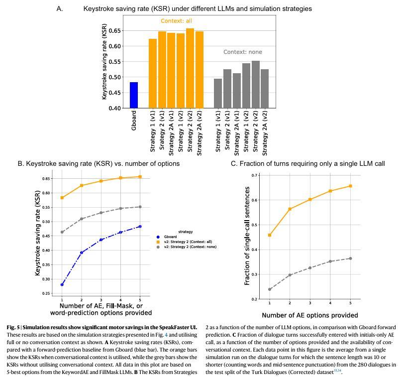 模拟结果还表明,SpeakFaster 在提供 5 个最佳短语选项的情况下表现最佳,并且对话上下文对于 LLM 的预测能力至关重要。