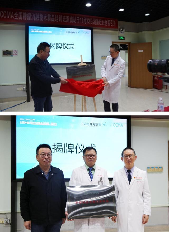 ▲揭牌、授牌仪式(授予湖南旺旺医院“肿瘤微波消融培训基地”)