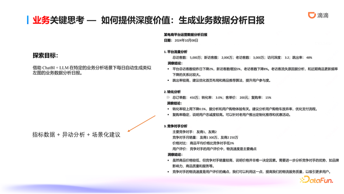 生成业务数据分析日报:借助 ChatBI + LLM 在特定的业务分析场景下每日自动生成类似上图的业务数据分析日报。