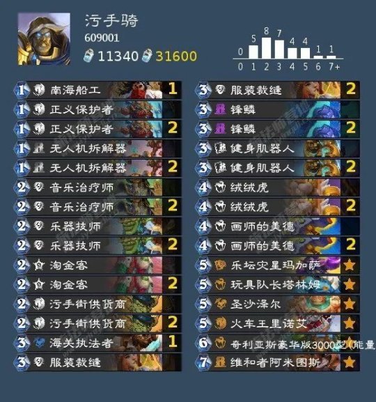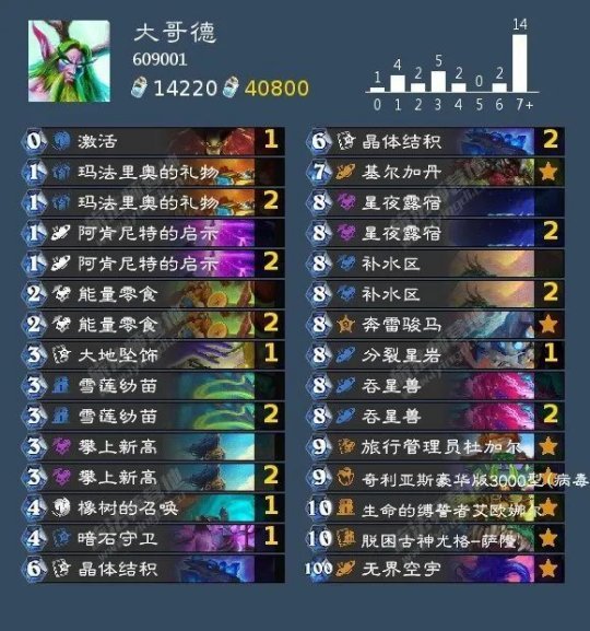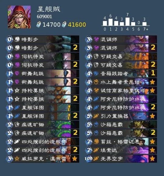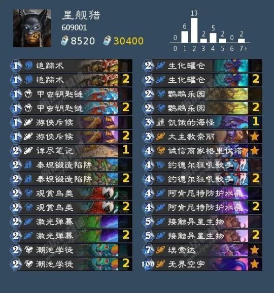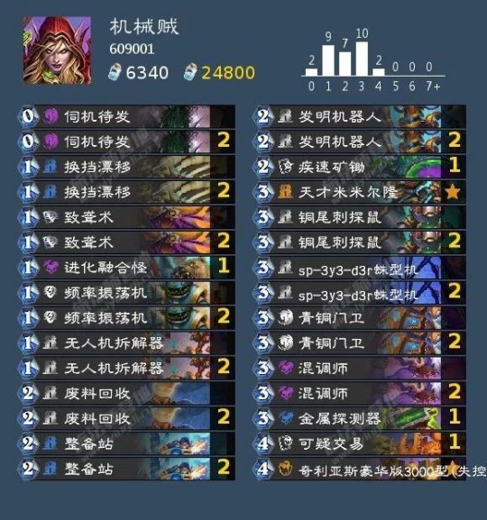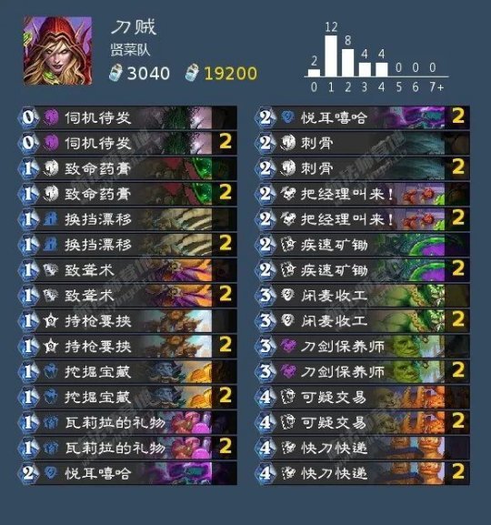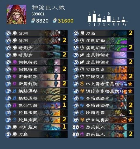 天梯前1000骑士少了一些,现在风头最盛的是盗贼,神谕巨人贼有望成为新的王者,基本是拨号贼的转型,还是索尼娅那一套,中期铺一地巨人返场;此外现在刀贼非常猛,基本没啥克星,嘎嘎两刀下去30血没了,不讲道理。相比第一天,今天星舰贼的热度下去了很多。神谕巨人贼:带了个冰片,针对骑士和刀贼的刀