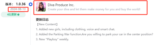 之后,游戏在小规模测试的同时开始不断的版本迭代,2024年7月初,其替换了新的商店icon、简介以及截图,对外宣推风格开始逐步清晰,同月底,再次替换icon及截图,至此游戏对外素材的风格基本确认。然而,时间来到8月中旬,游戏改名为《Diva Produce Inc.》继续测试。