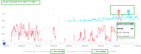 由于题材的“特立独行”,该作曾被寄予厚望,然而上线初期成绩并不理想,直到2022年2月月流水才破百万,之后开启了缓慢的增长之路,同年8月其登陆中国大陆。
