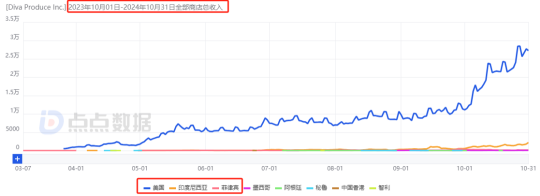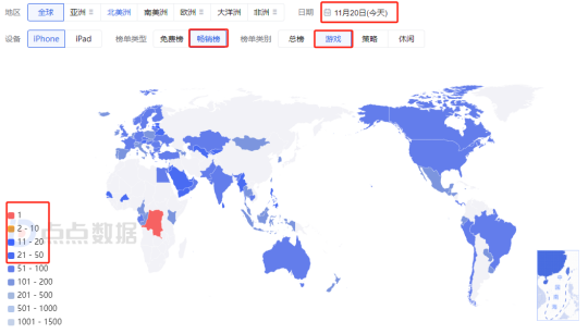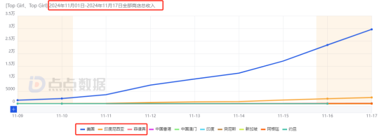 流水方面,今年10月之前一直处于小幅度增长中,直到10月流水冲至503万,是前一月的两倍以上,下架前总流水超1480万元,而美国以95.08%的贡献位居第一。