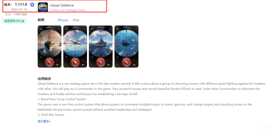 该作最早上线于2023年7月中上旬,起初游戏名是《Uboat Defence》,后来陆续改为《Uboat.》、《Sea Raid》,直到去年11月正式定名为《Sea War: Raid》。