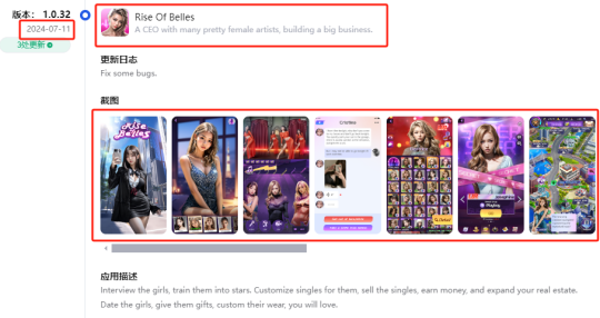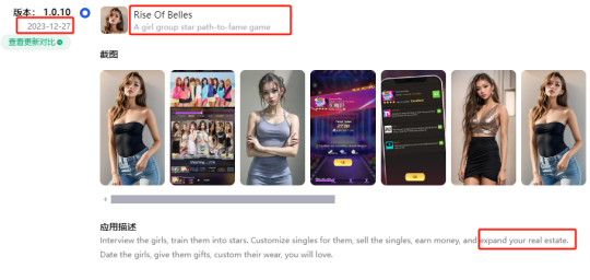 《Top Girl》最初名为《Rise Of Belles》(《美女崛起》),由Tap4Fun旗下发行账号James Halliday于2023年12月底上架Google Play,当时其应用截图相比现在更加拟真,真人女团的感觉也更加明显。