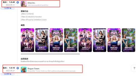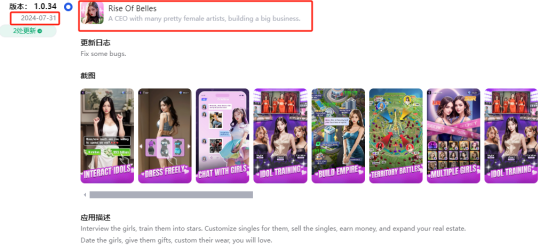 简单来说,《Diva Produce Inc.》(最初的《Rise Of Belles》)、《Diva inc.》以及《Top Girl》实际同为一款游戏,但相互之间处于不同的发行账号之下,上线时间存在前后衔接。具体来看,在换账号上架《Top Girl》的一周前《Diva Produce Inc.》便已下架,《Diva inc.》由于导量少,市场影响力一般,直到11月19日才正式下架。