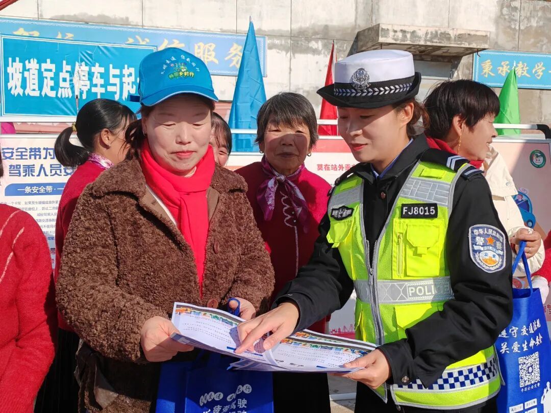 现场还设立交通安全咨询台,摆放宣传展板,悬挂交通安全宣传横幅,通过散发交通安全宣传材料、宣讲交通安全知识、解答群众交通安全方面疑惑等形式,向现场群众宣讲交通安全知识,鼓励引导大家安全文明出行。