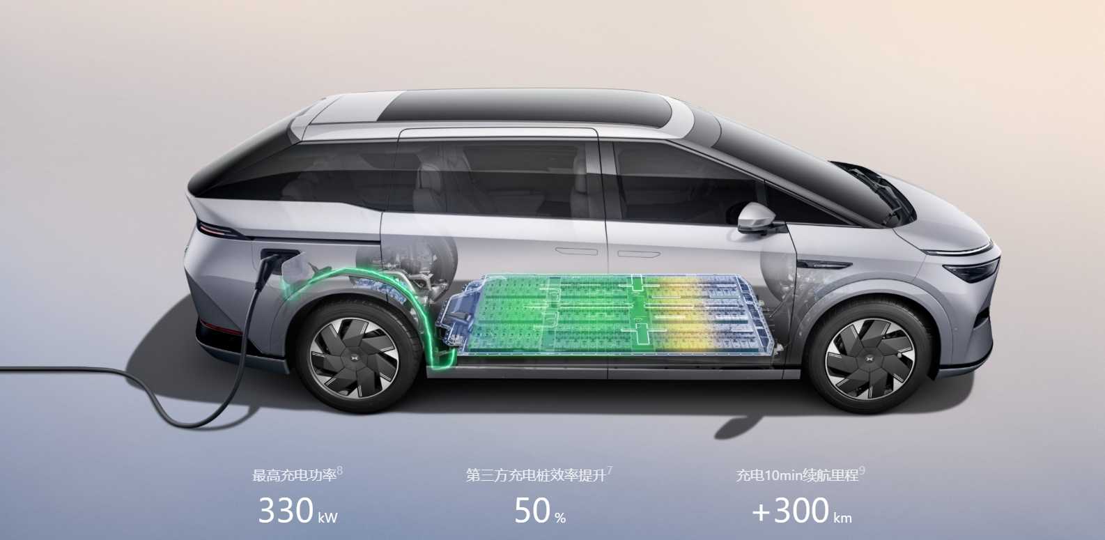 在动力方面,小鹏X9同样不容小觑。该车配备了前后双电机,最大功率分别为前235kW和后135kW,最大扭矩达到640N・m,零百加速时间仅需5.7s,最高车速可达200km/h。在续航方面,小鹏X9配备了84.5kWh与101.5kWh电池组,CLTC纯电续航里程提供610km、640km与702km三种选择。同时,该车还标配800V高压SiC碳化硅平台,充电10分钟即可增加300km续航,为用户提供了更加便捷的充电体验。