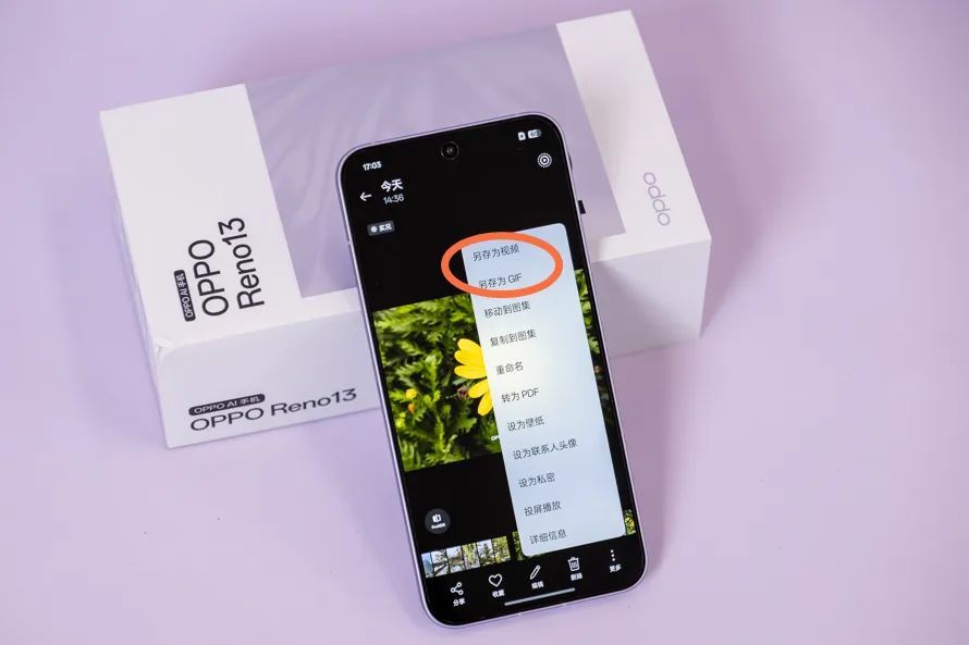 如果一款App无法支持Live Photo分享,那么也别担心,Reno13还支持在相册内将实况照片转换成Gif动图或者视频的形式,这样分享起来也会更加方便。