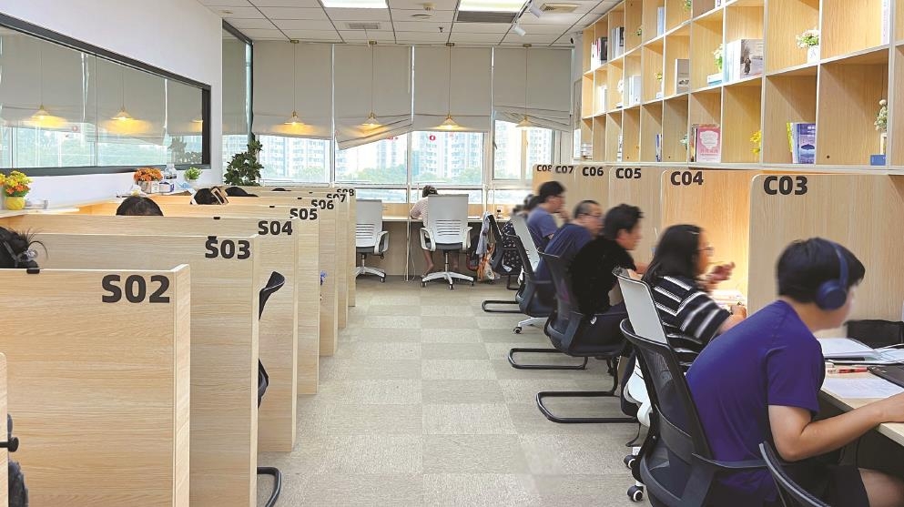 早晨8点,闵行区宝龙大厦办公楼内的一家付费自习室内,便有一拨准备“考研”“考证”“考编”的年轻人陆续进来。抱着厚厚一摞学习资料、打开电脑,迅速调整到学习状态。