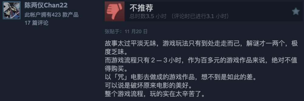 不过它的口碑不错,steam上有92%的好评,所以很多人还是蛮期待玩《咒》的。