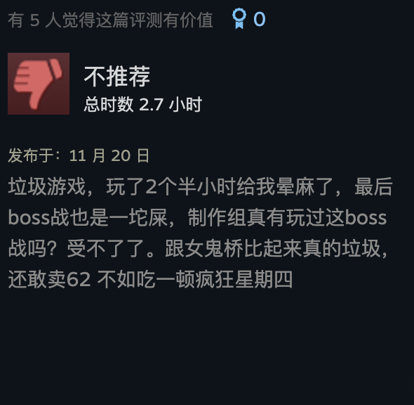 也许看讲解很难看出好不好玩,不过我们可以看看玩家的打分——在steam上,它好评只有63%,褒贬不一。