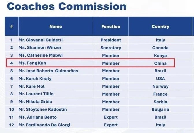 近日,国际排联正式宣布,前中国女排国家队队长冯坤正式当选新一届教练委员会委员,任期为2024-2028年。