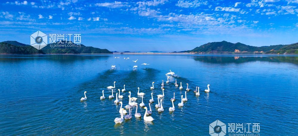 11月26日,在江西省德兴市德兴铜矿的四号尾矿库,一群国家二级保护动物白天鹅在此嬉戏、觅食、休憩,与山水交相辉映,构成了一幅美丽和谐的生态画卷。 近年来,江西省德兴市加大生态建设力度,矿库的生态环境明显改善,吸引天鹅、大雁等众多候鸟在此栖息、越冬。 视觉江西 张伟峰 詹求昊 摄