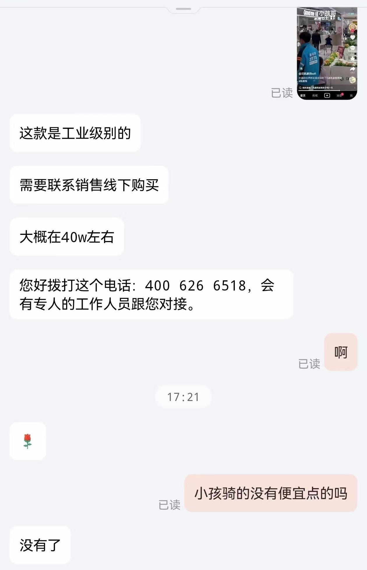 九派新闻记者注意到,评论区有网友晒出截图,称其去销售这款机器狗的网店打听过情况,得到的回复是,这款机器狗售价40万元。