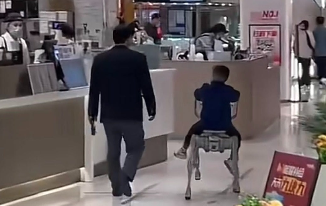 近日,武汉光谷地区一家商场里出现驮着小孩行进的机器狗,引发热议。