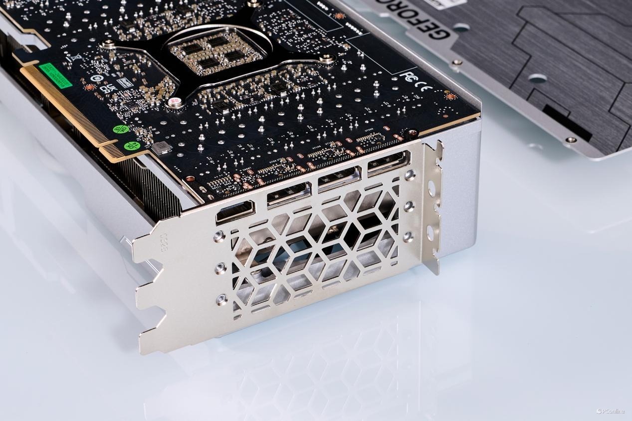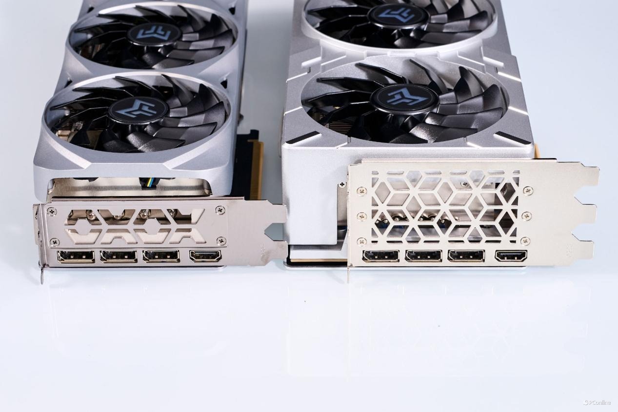 I/O 接口挡板采用菱形镂空设计,提供 3 个 DP1.4a 接口以及一个 HDMI2.1a 接口。HDMI 接口最高支持 4K/120Hz 或 8K/60Hz 超清输出,而 DP 接口最高支持 4K/240Hz 或 8K/120Hz 输出,为用户提供了丰富的显示选择,满足不同用户的需求。
