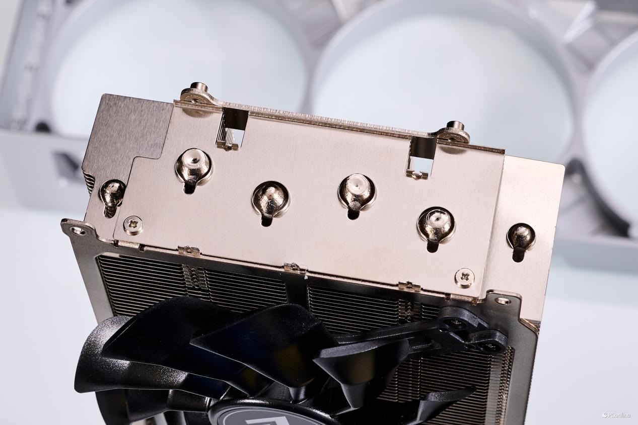 而另外2条6mm热管则是采用u型设计回到主散热模组顶部散热鳍片上
