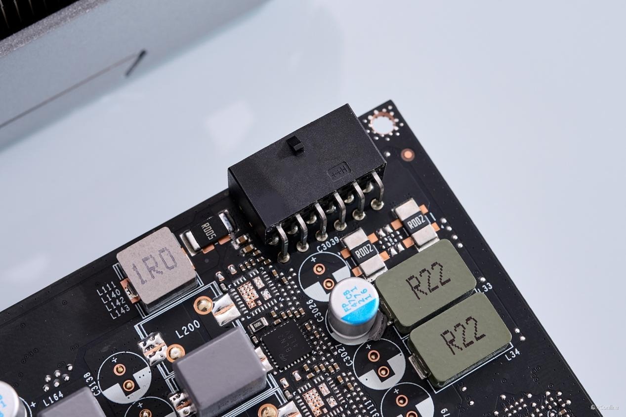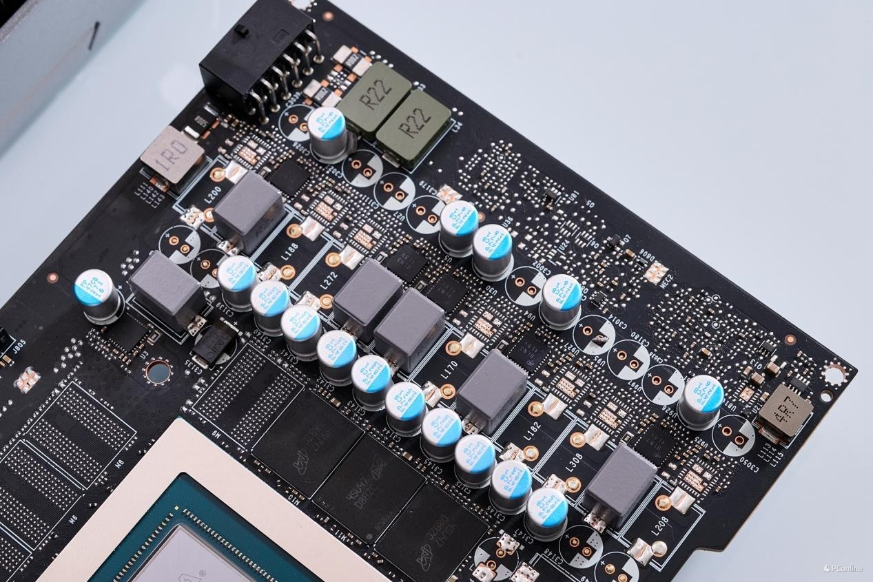 显卡供电分别位于显卡两侧,总供电为10+2相供电设计,其中10相为核心供电,2相为显存供电。
