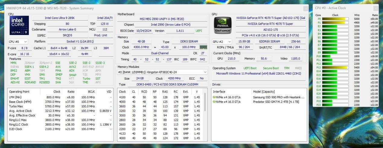 测试平台方向,我们这里选用了英特尔最新一代酷睿Ultra 9 285K处理器,配上微星MEG Z890 UNIFY-X主板,金士顿DDR5-8200 C40内存。系统方面则是目前游戏性能表现较为稳定了WINDOWS 11 23H2,驱动版本为NIVIDIA官方下载的Game Ready Driver 566.14 - WHQL。