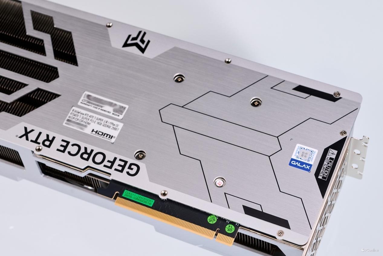 影驰RTX 4070 Ti SUPER 金属大师Plus OC显卡背部是为铝合金材质,经过拉丝处理后,呈现出细腻的质感。铝合金背板不仅为显卡提供了坚固的保护,还能有效地防止 PCB 弯曲,延长显卡的使用寿命。