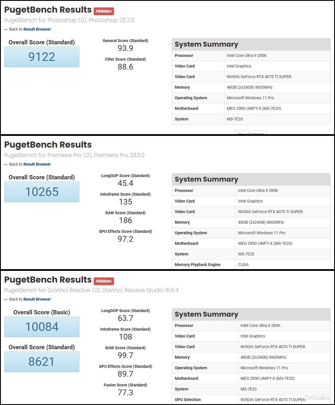 理论内容创作性能方面,我们采用UL Procyon与PugetBench for Creators两大项目进行测试,实测表明影驰RTX 4070 Ti SUPER 金属大师Plus OC显卡很强。尤其是视频能力方面,显卡的GPU能力相比上代显卡强上不少。