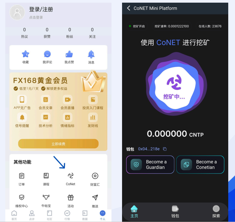 6. 生态挖矿收益:CoNET钱包与FX168 APP深度集成,用户可无缝体验浏览器挖矿服务,实现数字资产的增值与财富积累。
