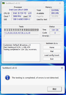 历时11分12秒的3轮测试后,内存无报错通过。可见iGame Z890 VULCAN X采用新一代内存走线设计能够让高速信号更完整清晰,即使作为2DPC四槽主板也能轻松支持更高内存频率,让人更期待它完善超频功能后,搭配CUDIMM内存时的表现。