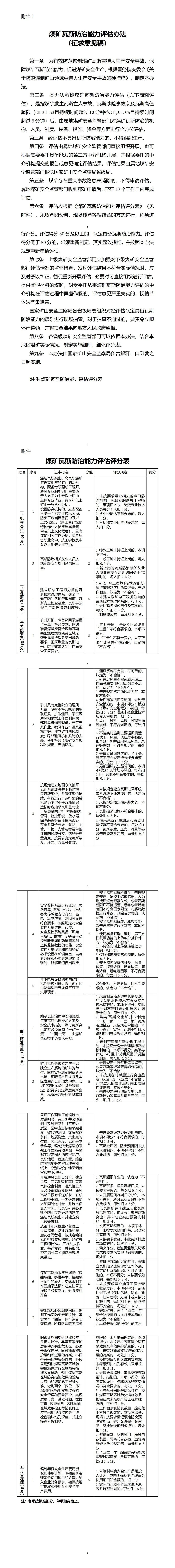 附件:1.煤矿瓦斯防治能力评估办法(征求意见稿)