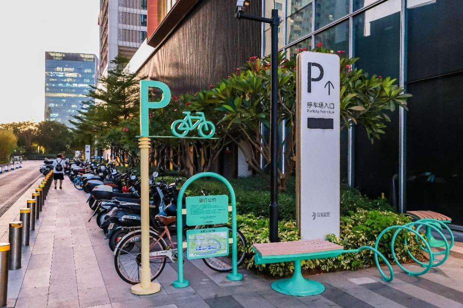 顺应宠物友好商业趋势,打造“爪爪乐园”,供爱宠人士携宠运动、方便毛孩子社交,逐渐成为周边爱宠圈的新据点;紧跟户外运动热潮,在道路节点布设“骑遇空间”供骑行爱好者停车和休憩,契合了骑行爱好者对绿色生活与运动健身的需求。