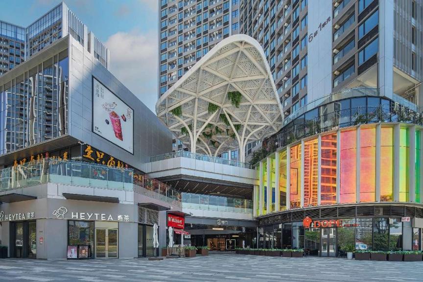 在新一代社区商业探索中,有这样一个案例,它是社区商业,但超越了传统意义上的社区商业。通过整合展会经济、片区生态资源与在地文化,它打造出一个兼具宜居、宜业、宜游、宜娱和宜购的商业生态圈,这个项目就是“深圳会展湾花园里”。