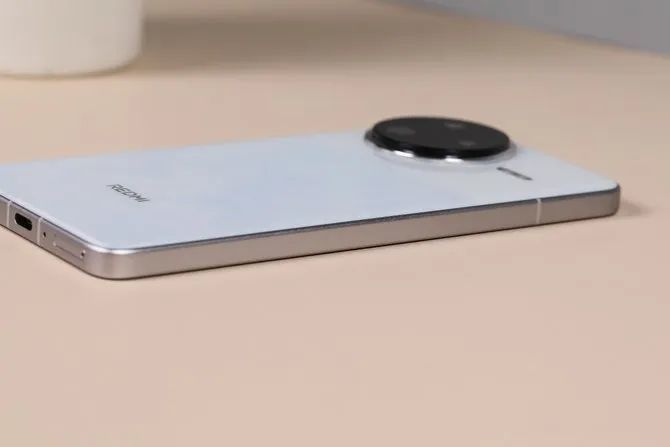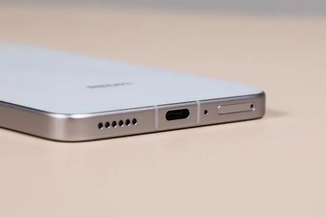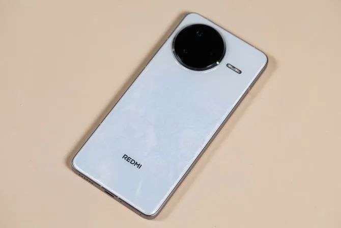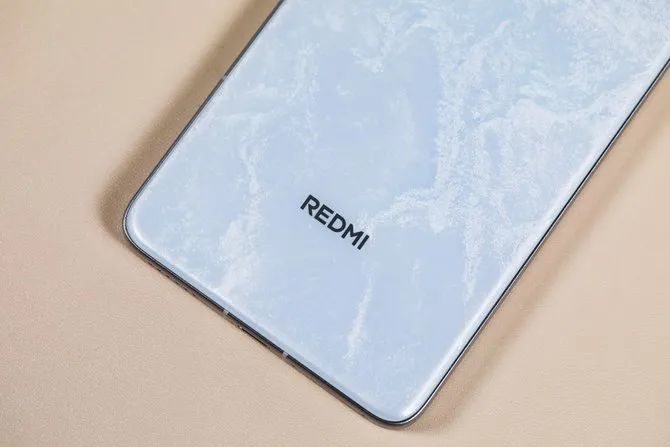 同时机身的下半部分则是全新的“REDMI”新10年LOGO,同时机身的下半部分则是使用了REDMI有史以来工艺最为复杂的“光雾双工一体工艺”,一种材料提供双重质感,本次我们拿到的是雪岩白的版本,内部透露着类似岩石或者羽毛的纹路设计,质感方面非常出色。