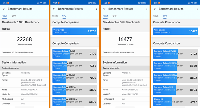 GeekBench 6的跑分中,REDMI K80 Pro的CPU单线程得分为2719,多线程得分为8835。GPU部分的OpenCL得分为22268,Vulkan得分为16477,性能表现相对于上代提升巨大。