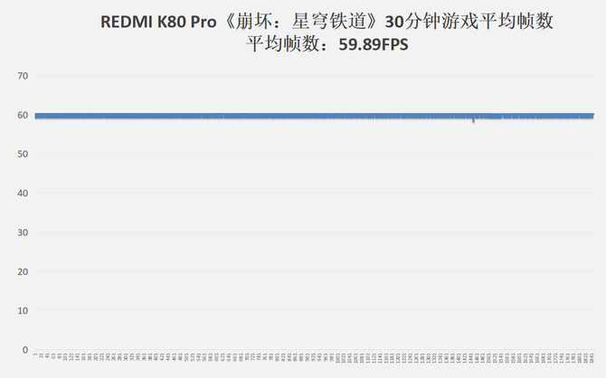 星铁的测试中,我们选择至高画质,60FPS模式,最终经过30分钟大本营跑图,游戏平均帧数为59.89,基本接近满帧运行,并且游戏帧数波动非常小。