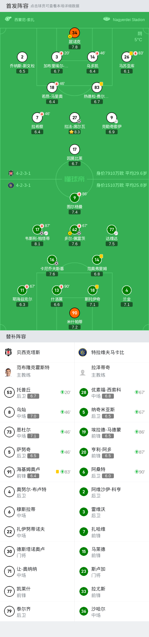第71分钟,贝西克塔斯球员因莫比莱将点球罚丢。