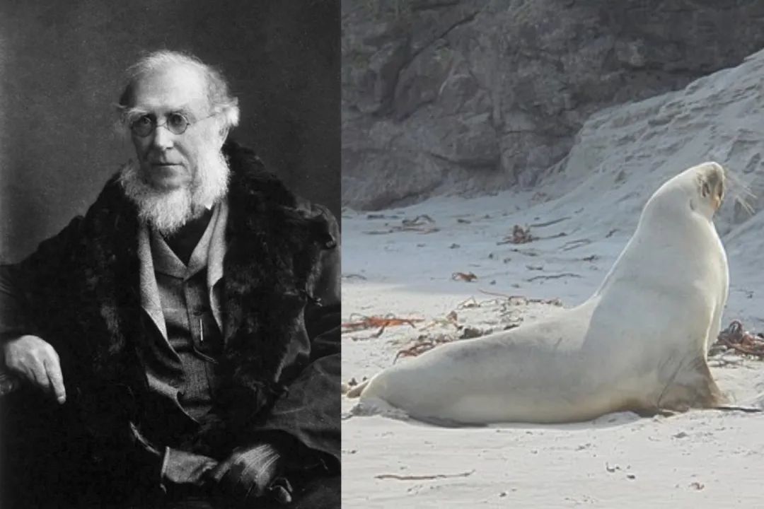 胡克(左)是当时著名的冒险家、植物学家,也是“进化论之父”达尔文的挚友。达尔文正是在与胡克的通信之中,首次透露了自己关于“物种演化”的想法。《物种起源》也是在胡克的鼓励下才最终出版发行。至少30多种生物以胡克的名字命名,包括胡氏海狮(右)(图片来源:Wikimedia Commons)