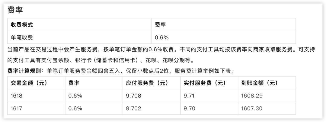 在支付宝官网——产品大全——支付产品一栏中,我们能看到付款码这类支付产品的详细费率。