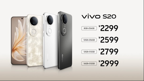 价格方面,本次发布的vivo S20有凤羽金、玉露白、松烟墨三款配色,vivo S20 Pro有凤羽金、紫气东来、松烟墨三款配色。其中,vivo S20 8GB+256GB版售价2299元,12GB+256GB版售价2599元,12GB+512GB版售价2799元,16GB+512GB版售价2999元;vivo S20 Pro 12GB+256GB版售价3399元,12GB+512GB版售价3799元,16GB+512GB版售价3999元。