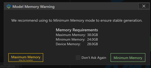 如果提示模型太大,点击“最小内存模式”以在最小内存模式下继续。