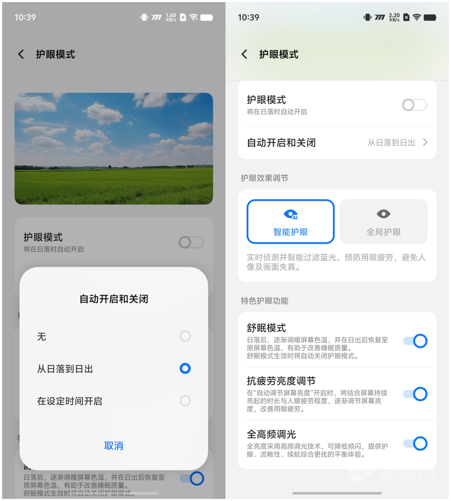 护眼方面,iQOO Neo 10 Pro首批搭载蓝厂护眼IP——悦目护眼,带来全天候的护眼体验。手机可以实时侦测画面和使用场景,进行的智能的蓝光过滤,预防用眼疲劳,暗光环境下还带来了夜猫护眼算法,可以提升画面的可视性以及舒适度。